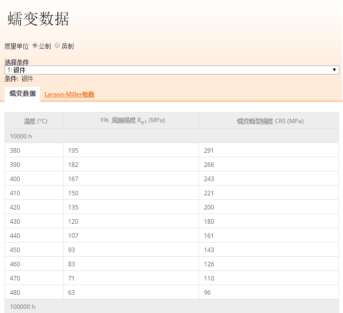 不同温度下的成形极限曲线和高应变曲线,用于模拟锻造、拉伸和其他成形工艺。断裂力学数据包括 K1C、KC、裂纹扩展和 Paris 常数,以及对应的裂纹扩展图。蠕变数据包括不同温度下的屈服强度和蠕变断裂强度,以及 Larson-Miller 参数和部件的剩余寿命计算。