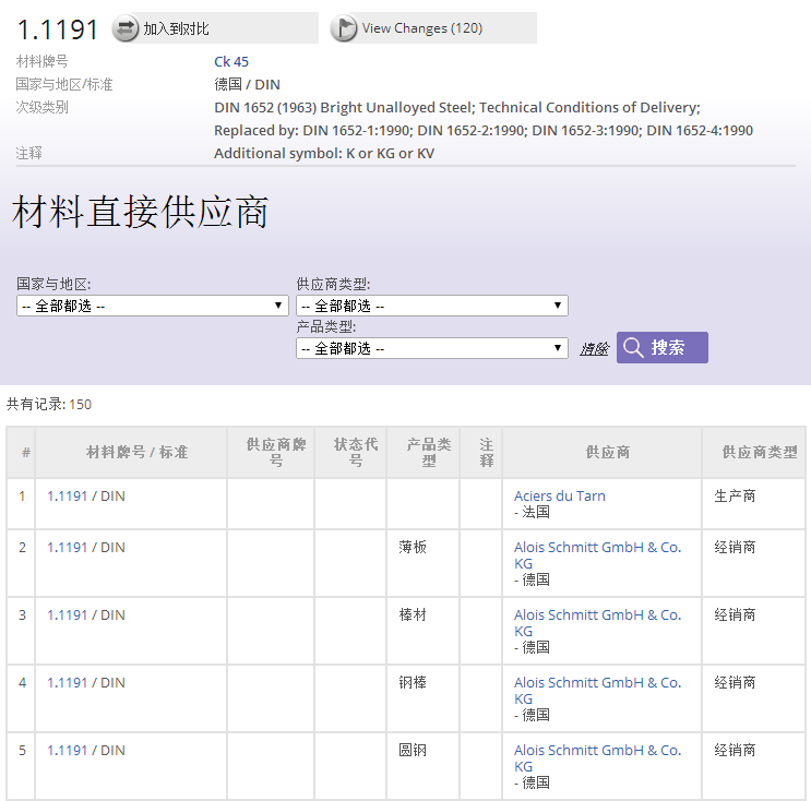 浏览、搜索并迅速找到来自世界各地的材料供应商。数据库中的材料牌号及标准与材料供应商及其材料直接关联,只需点击一下鼠标即可查看 Total Metals 和 PolyPLUS 模块中超过 540,000 种材料的供应商信息。